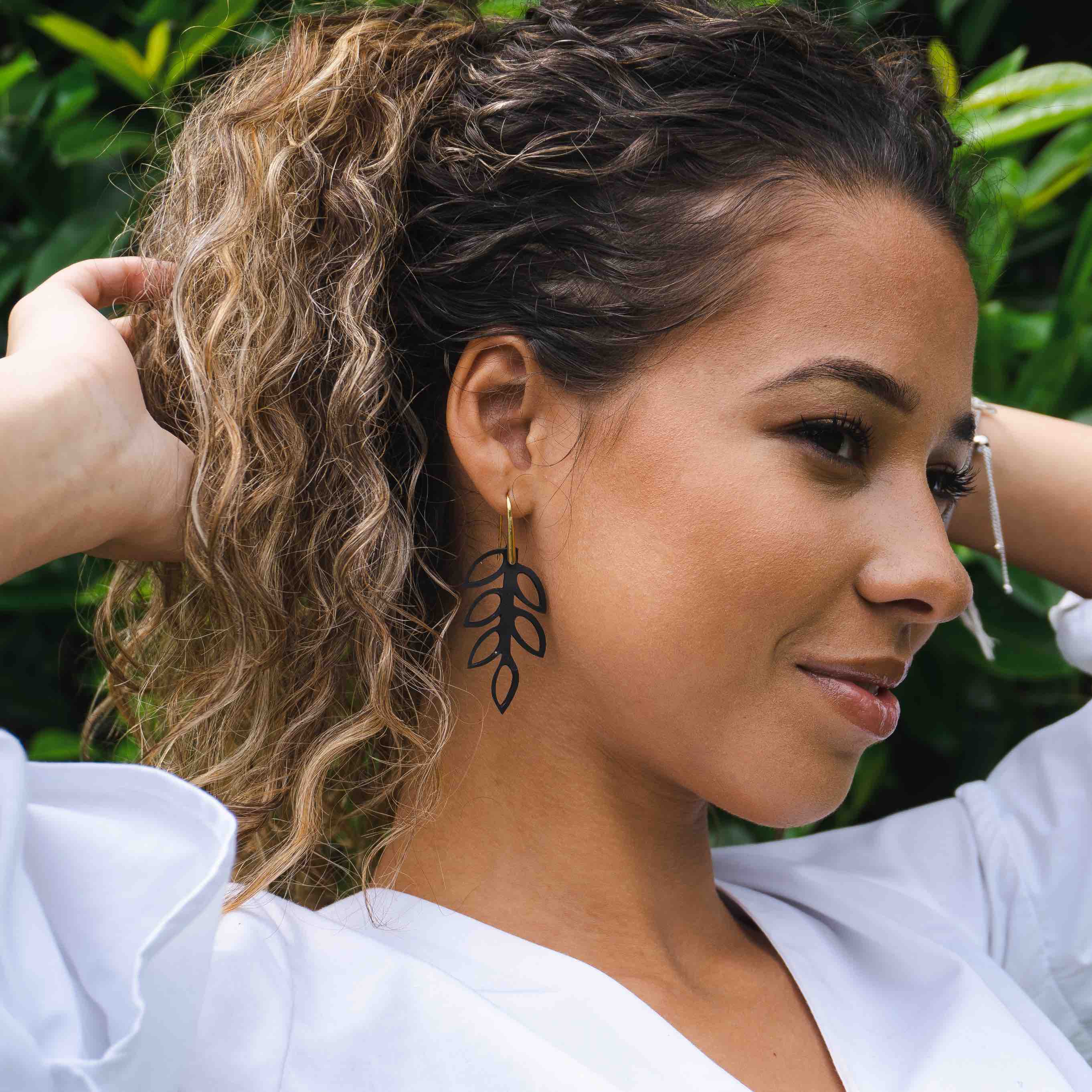 Evergreen Leaf Recycled Rubber Earrings