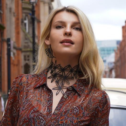 The recycled rubber is retrieved from old industrial printing machines. When the printers reach the end of their lives, they will be broken up and sold for scrap. We reclaim the rubber belts and use them for jewellery instead. With variations in texture and colour, all of the pieces are unique.