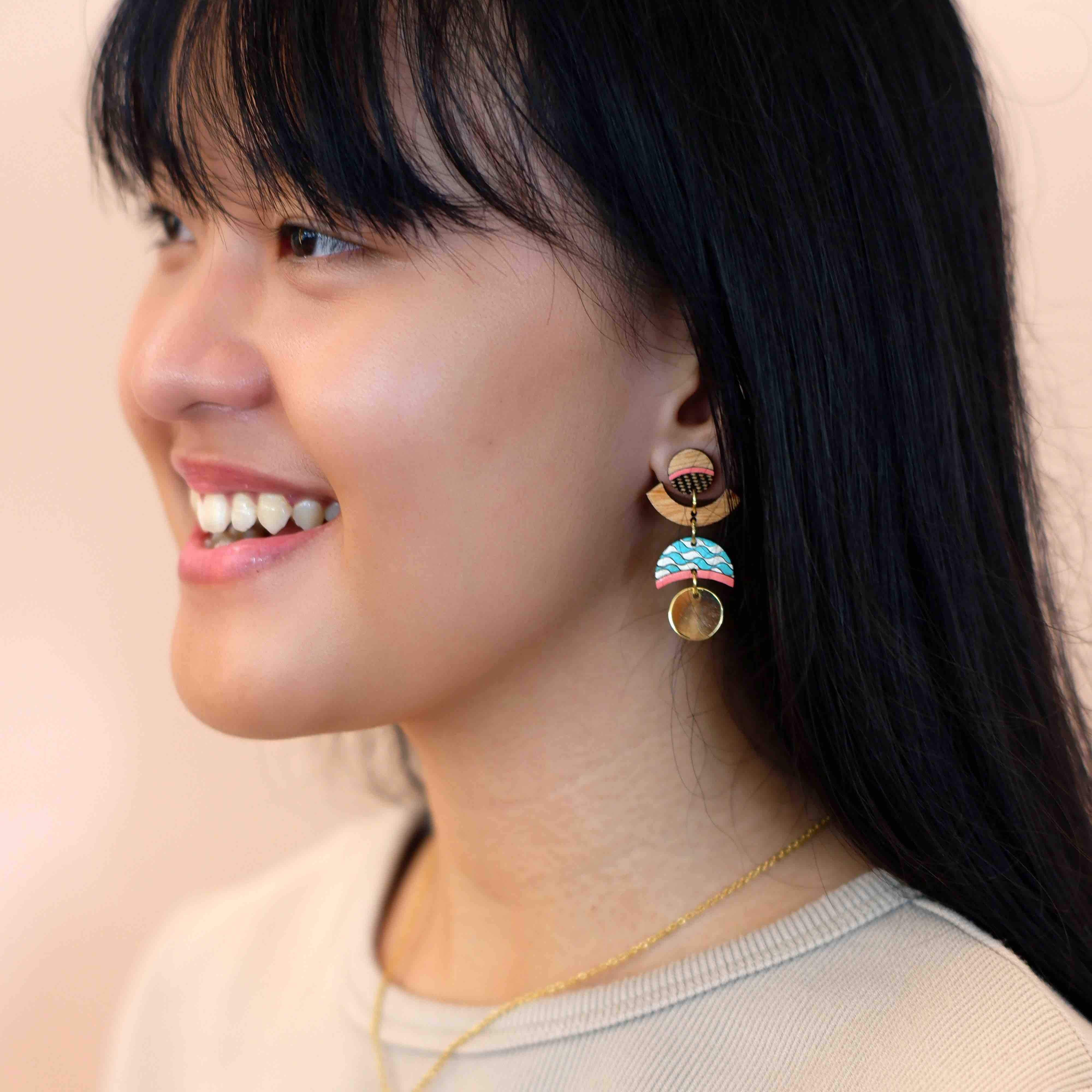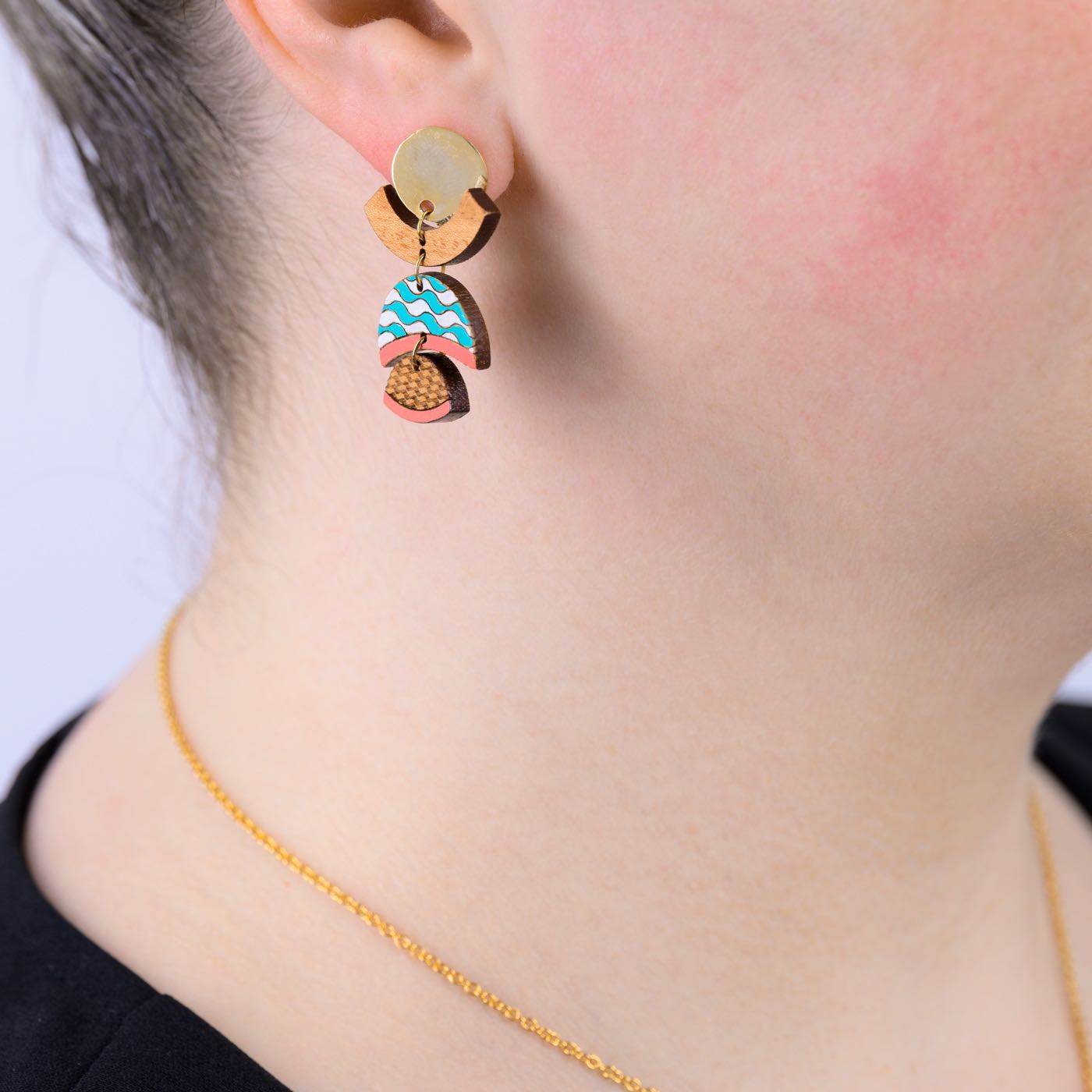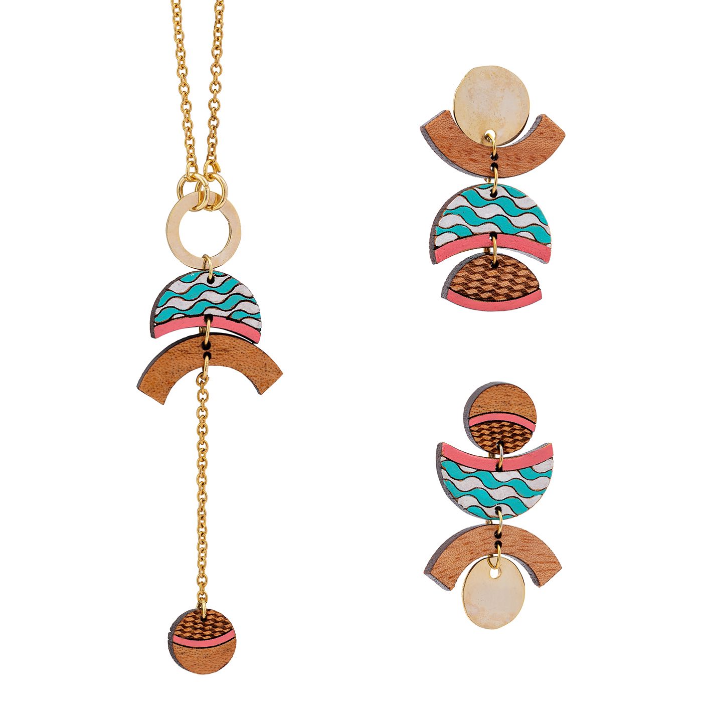 Unsere Handwerker haben Reste von Eichen-, Teak- und Mahagoniholz aus der Möbelindustrie gerettet, um ihre elegante Schmuckkollektion zu kreieren. Ihre Designs kombinieren perfekt die Schattierungen und Maserung des Holzes mit natürlichen Farben und Metallaccessoires.