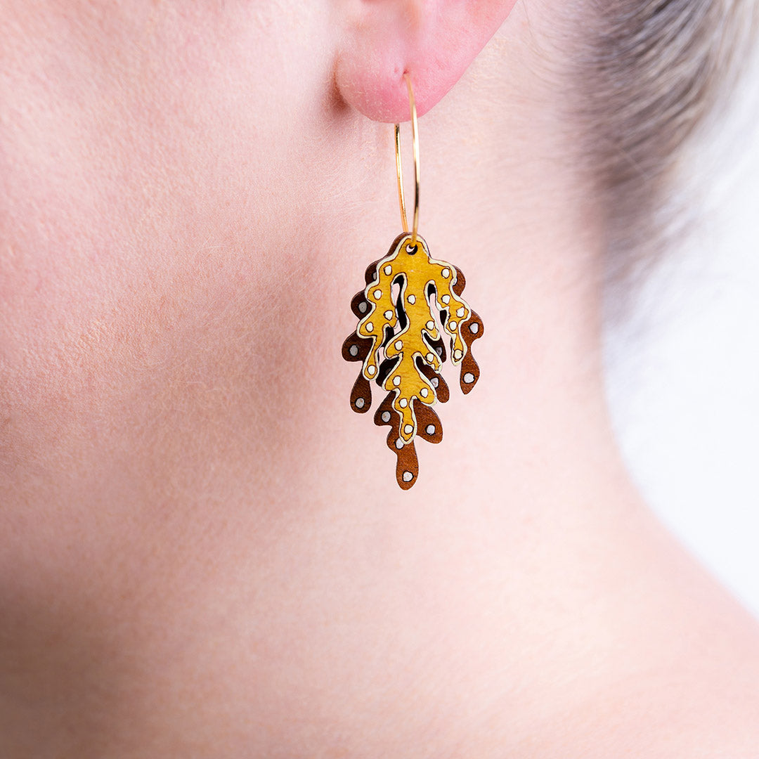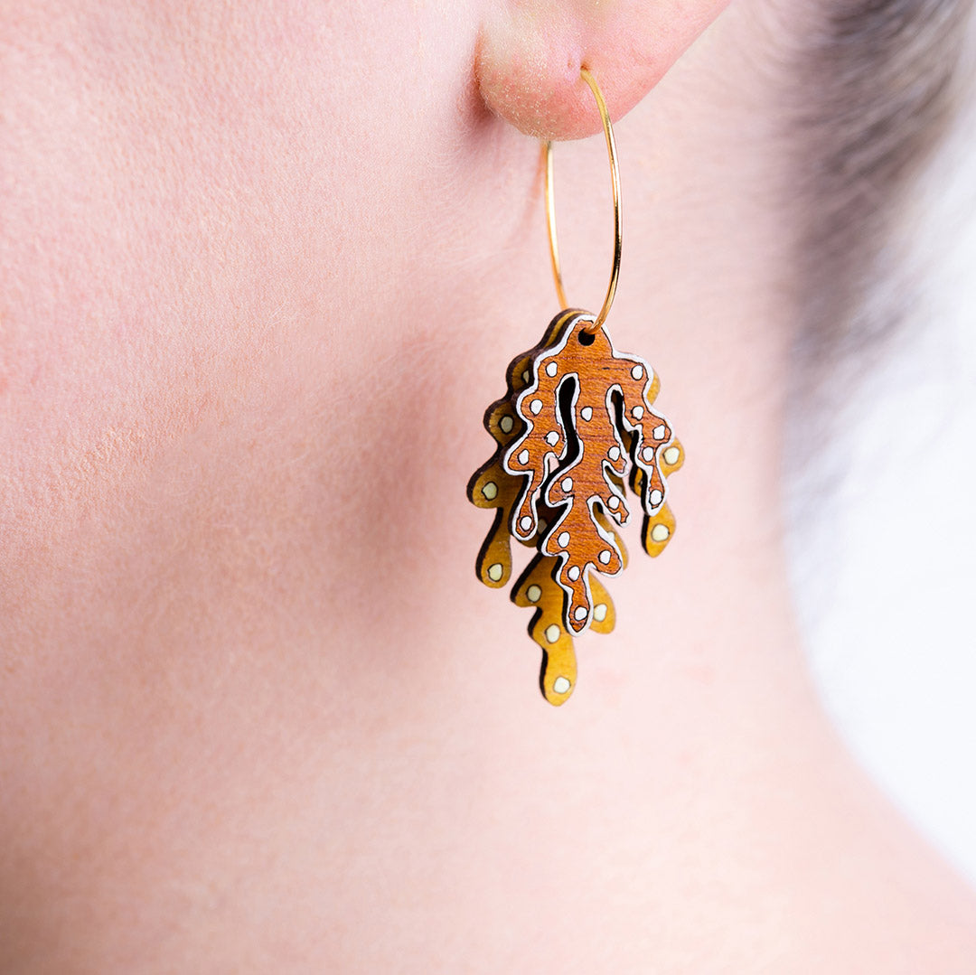 Our artisans have salvaged offcuts of oak, teak and mahogany from the furniture industry to create their elegant range of jewellery. Their designs perfectly combine the shade and grain of the wood with natural colours and metal accessories.