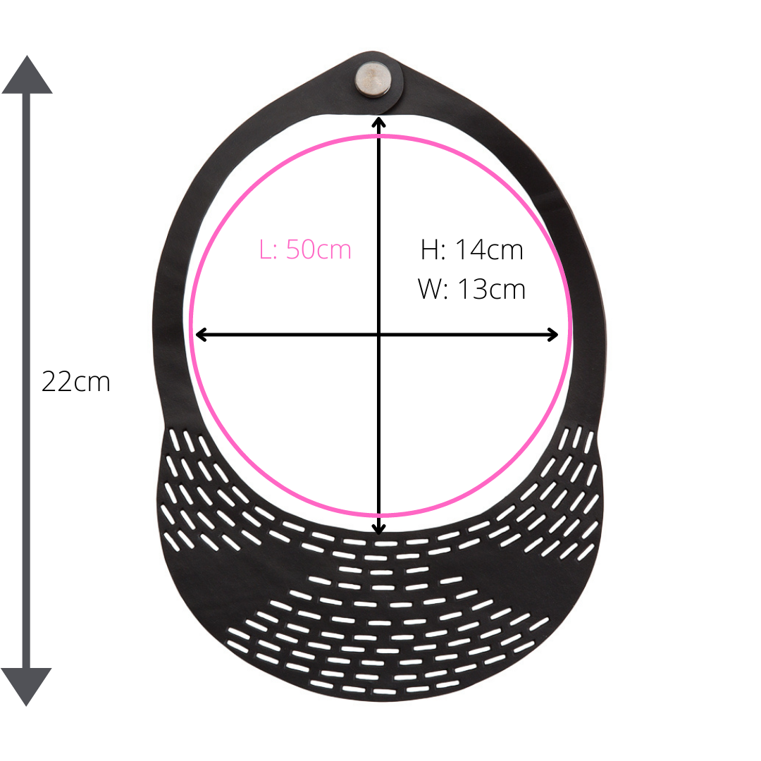 The recycled rubber is retrieved from old industrial printing machines. When the printers reach the end of their lives, they will be broken up and sold for scrap. We reclaim the rubber belts and use them for jewellery instead. With variations in texture and colour, all of the pieces are unique.