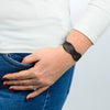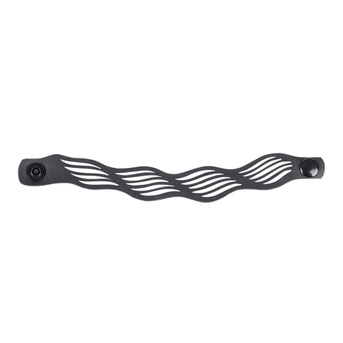The recycled rubber is retrieved from old industrial printing machines. When the printers reach the end of their lives, they will be broken up and sold for scrap. We reclaim the rubber belts and use them for jewellery instead. With variations in texture and colour, all of the pieces are unique.